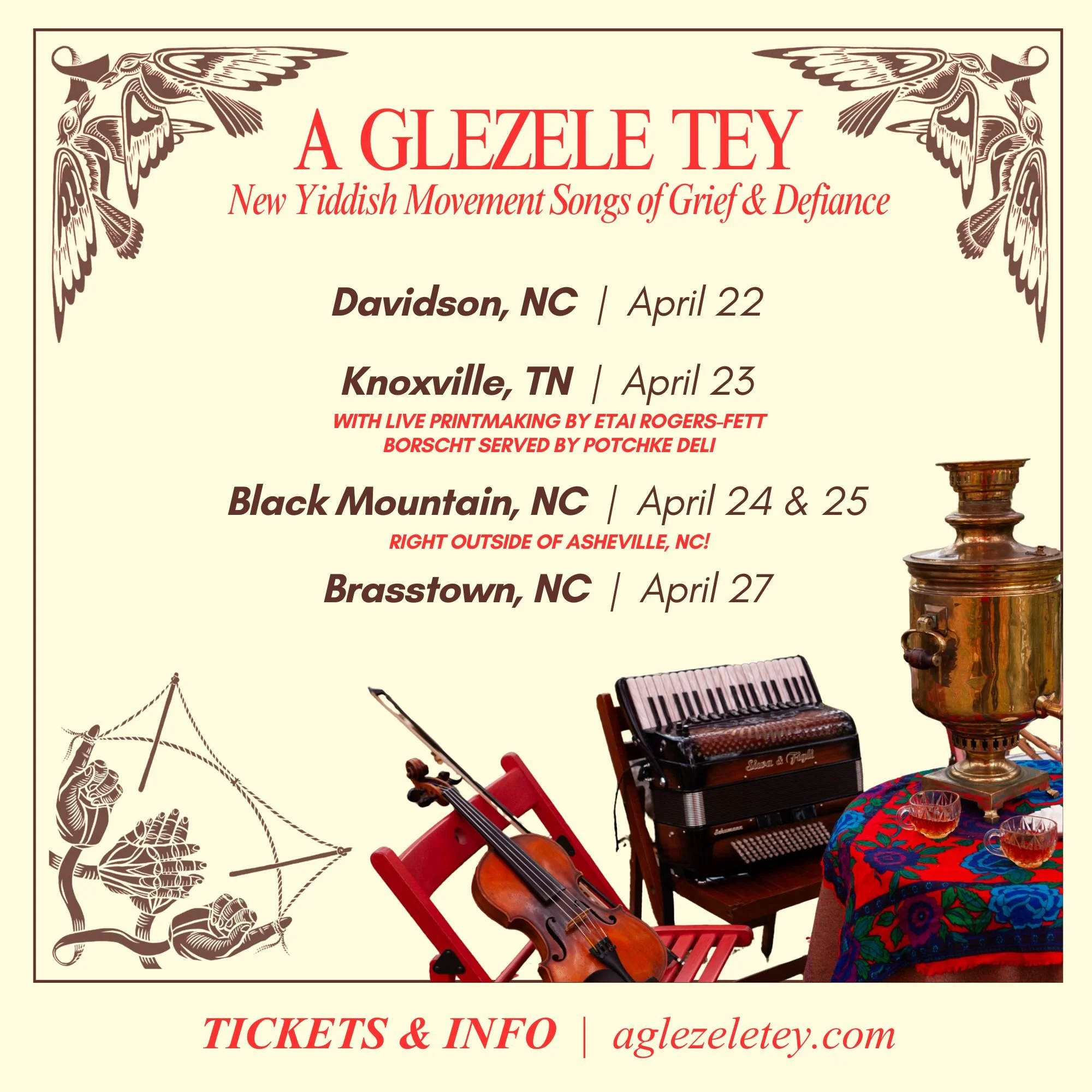 A Glezele Tey will be hitting the road in North Carolina and Tennessee this April — see you there!