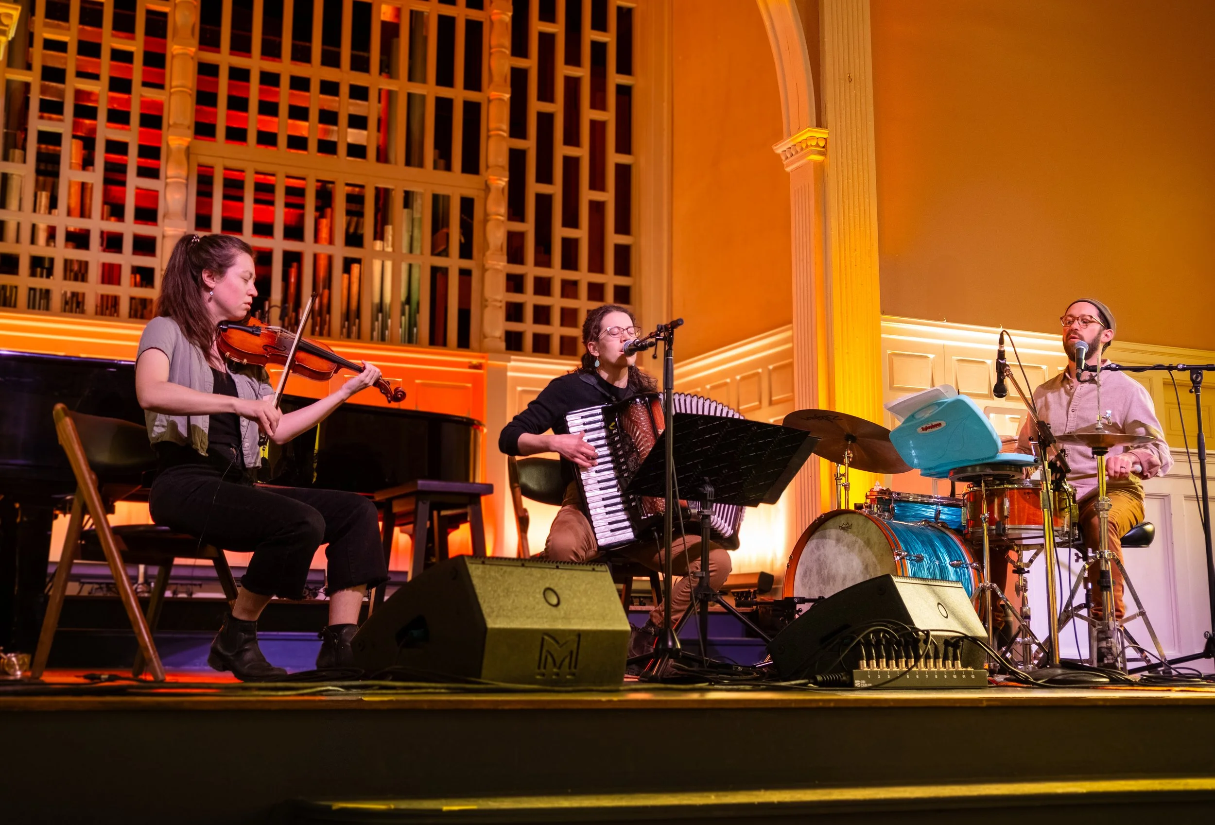 A Glezele Tey is comprised of acclaimed klezmer musicians and composers Ariel Shapiro, Rachel Leader, and Richie Barshay.